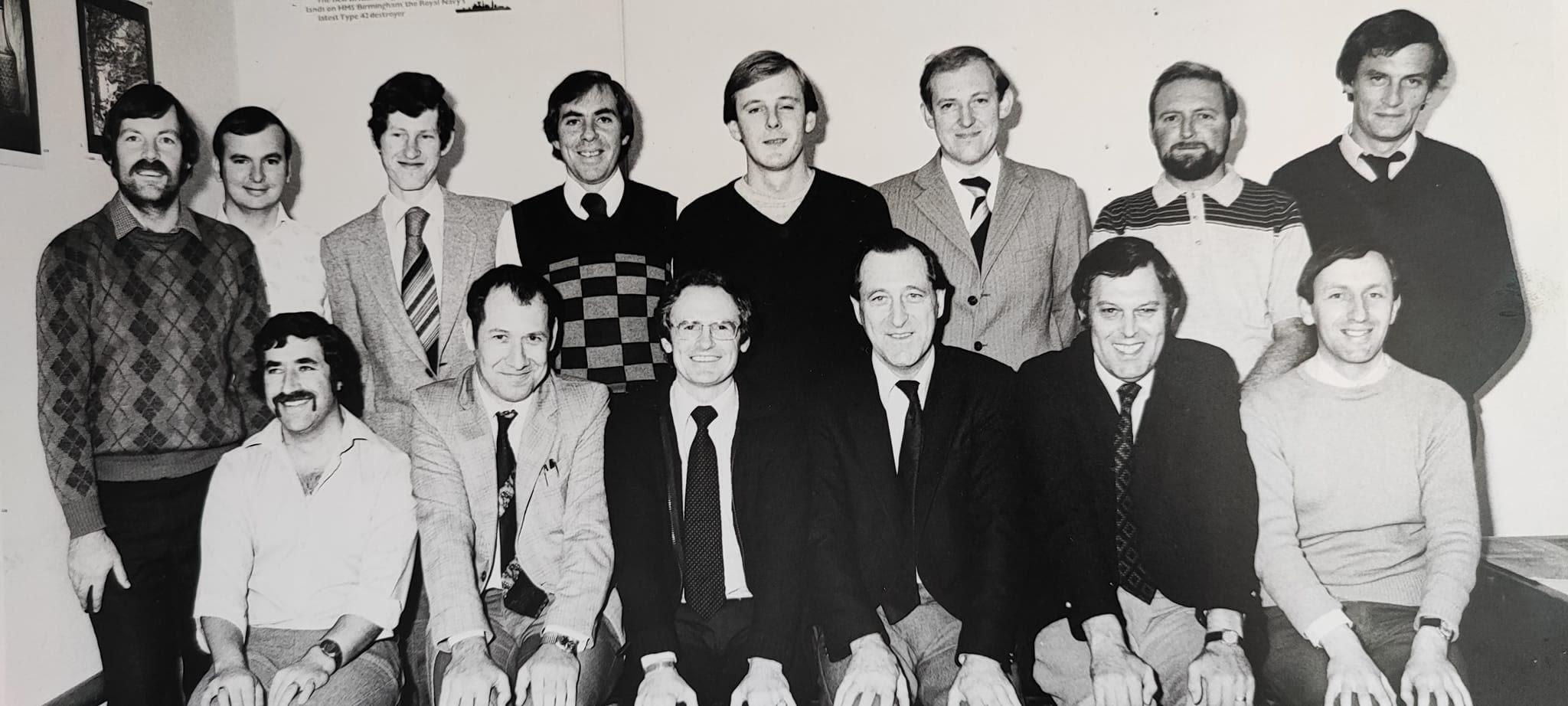 Malcolm Harley (top middle) with the constructive section of the Dockyard in 1982.